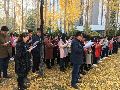 诵读活动伊始,best365官网2017级硕士研究生张继中为全体师生带来了一首《红旗飘飘》。王蓉同学对《国际歌》的作曲背景做了简单介绍,《国际歌》是由欧仁·鲍狄埃在1871年作词,比尔·狄盖特于1888年为其谱曲,此歌曲讴歌了巴黎公社战士崇高的共产主义理想和英勇不屈的革命气概,充分表现了革命无产阶级不屈的豪迈气魄。接着由best365官网陈红老师带领师生高唱《国际歌》,气势磅礴、雄伟庄严的旋律营造了诵读的良好氛围。