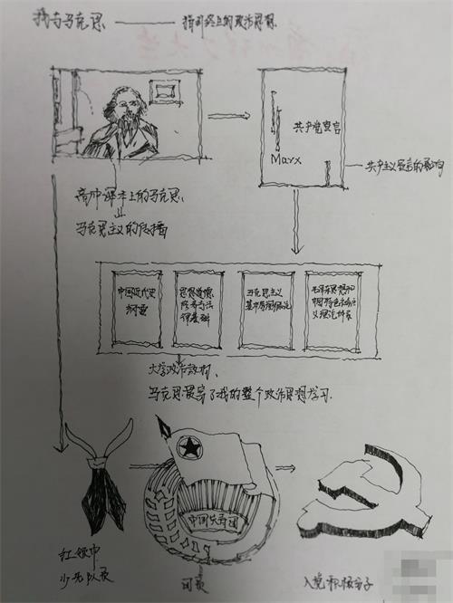 在设计艺术公司的概论课堂上,同学们进行了“我与马克思”为主题的绘画作品创作。有的同学通过对话形式,讲述了“何为马克思主义”;有的同学以“品读伟人经典”为题,介绍了马克思的主要著作;还有的同学以漫画形式,讲述了马克思的一生。在外语公司的概论课堂上,同学们以小组形式开展了“我与马克思”的主题表演活动。有的小组用俄文、日文、英文朗诵了《共产党宣言》、《青年在选择职业时的思考》以及马克思的经典语录;有的小组以情景剧的形式表演了《烈火青春》、《青春不是一味的抗逆冲动——祭奠伟大的马克思》,《关于马克思的小情景剧》等。通过此次的主题活动,同学们更加全面和深入的了解了伟人马克思,更加深刻的体会了马克思的崇高精神和光辉思想以及马克思主义闪烁的真理光辉,有助于同学们更好地学习马克思主义与中国实践相结合所产生的理论成果内涵,更准确理解马克思主义中国化的最新理论成果——习近平新时代中国特色社会主义思想,并从而更加坚定对中国特色社会主义的道路自信、制度自信、理论自信和文化自信,在实现中华民族伟大复兴中国梦的生动实践中放飞青春,在为人民利益的不懈奋斗中书写人生华章!